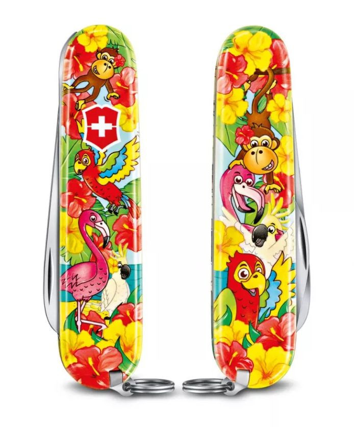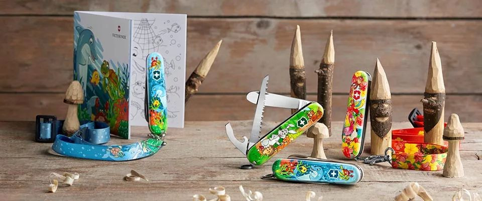 Victorinox My First Victorinox Children Sets Animal Edition közepes méretű zsebkés lekerekített hegyű pengével, fafűrésszel és nyúl mintás markolattal.